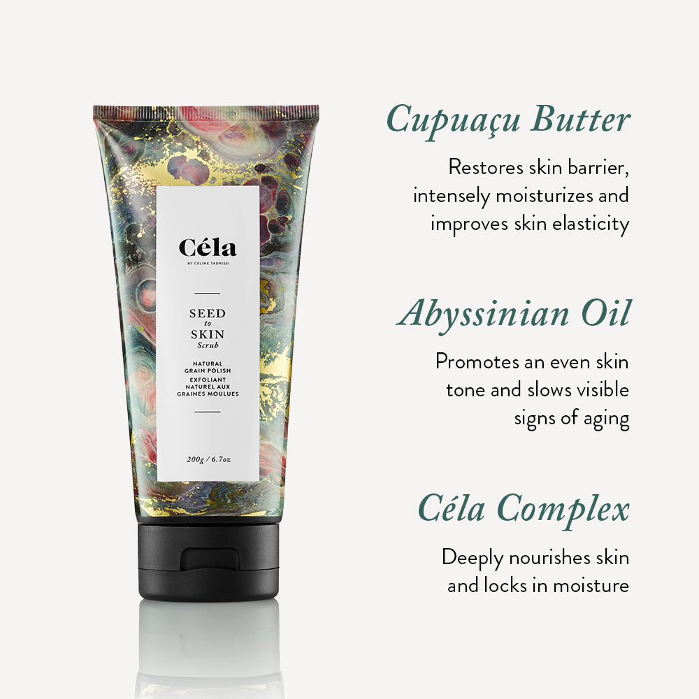 Bring the spa to your shower with Seed to Skin body scrub: Finely milled Amazonian cupuaçu seeds gently exfoliate, dislodging surface impurities and debris while caring for and revitalizing your skin to reveal a lit-from-within glow that’s more than skin-deep. Pampering Abyssinian oil and moisture-replenishing shea butter are luxuriously nourishing, while the deliciously soft and velvety notes of a rosewater, peach, and jasmine aromatic blend make this a multi-sensory body care ritual.